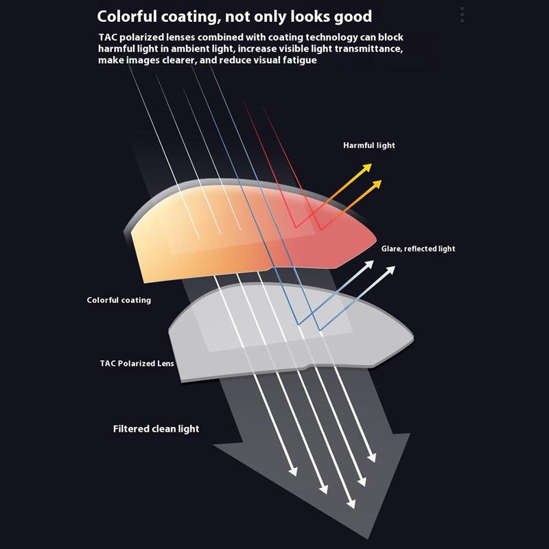 - Materialien: PC + TR-Rahmenelemente, TAC-Glasmaterial für eine leichte, sportliche Konstruktion