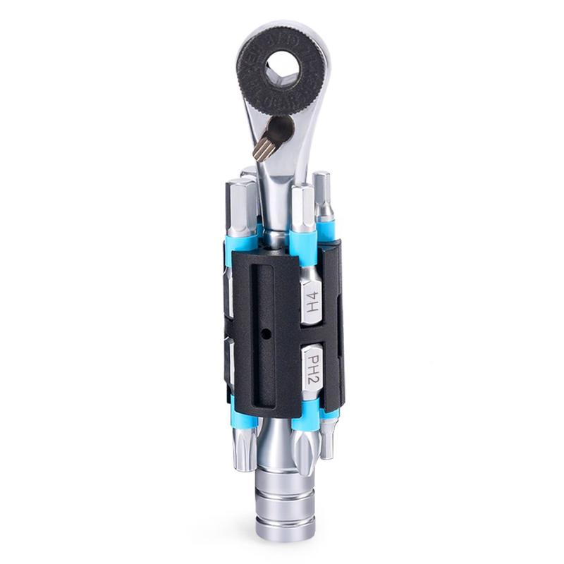 • Rockbros TG-8601 Tragbarer Ratschenschlüsselsatz / Magnetisches Fahrrad-Reparaturwerkzeugset mit 8 Bits