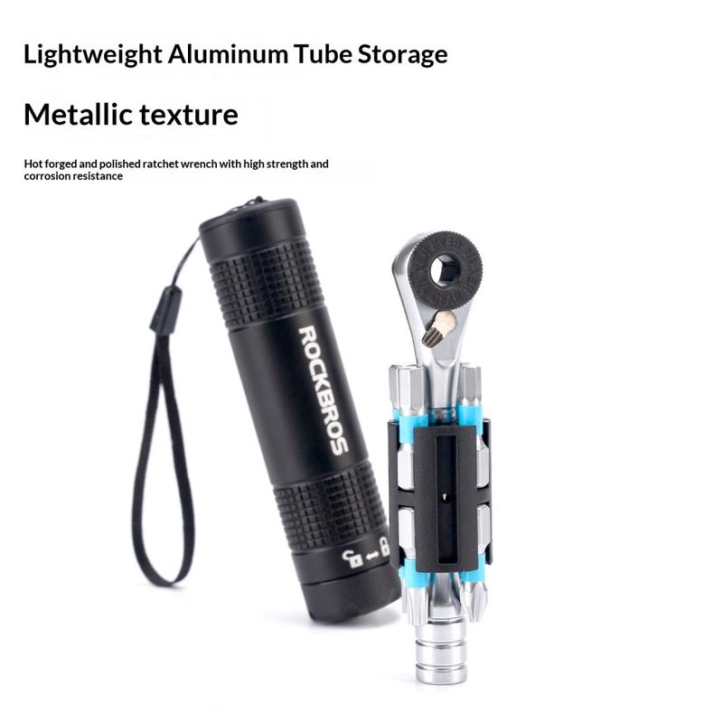 Der Rockbros TG-8601 kombiniert ein intelligentes Ratschendesign, magnetische Bequemlichkeit und eine kompakte Form und ist damit ein zuverlässiges All-in-One-Fahrradreparaturwerkzeug für Radfahrer, die Wert auf Effizienz und Tragbarkeit legen.
