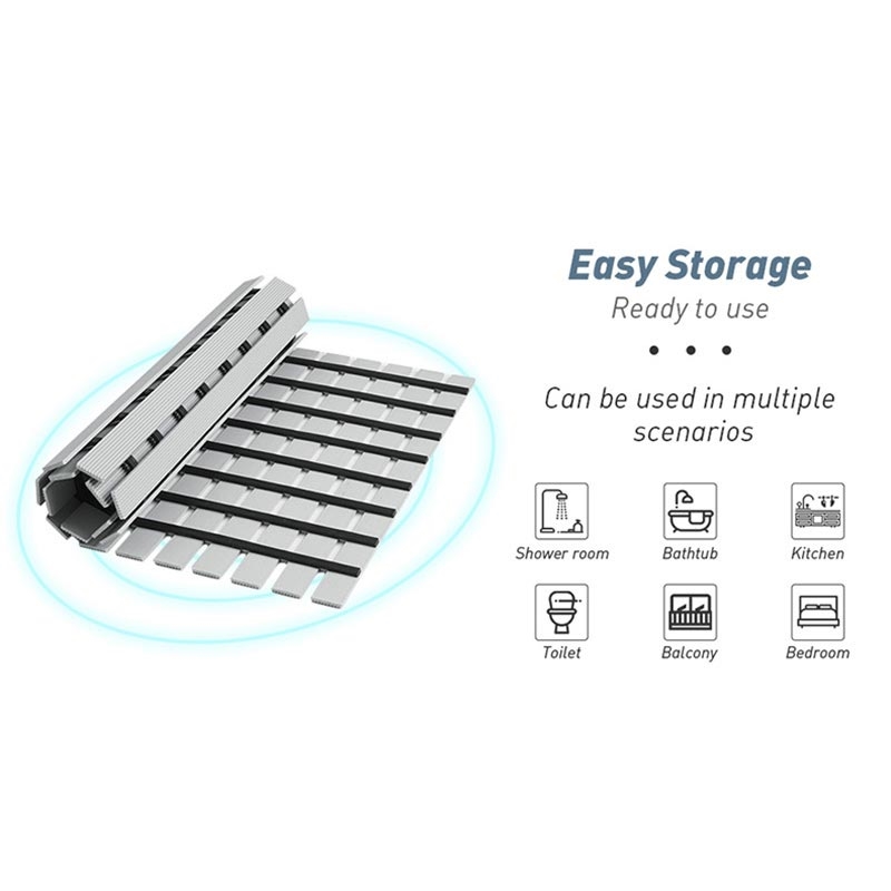 Das weiche, biegsame Design der Matte macht es einfach, sie zusammenzurollen und zu verstauen, wenn sie nicht gebraucht wird. Perfekt für kompakte Bäder, kleine Wohnungen, Wohnwagen und Wohngemeinschaften.
