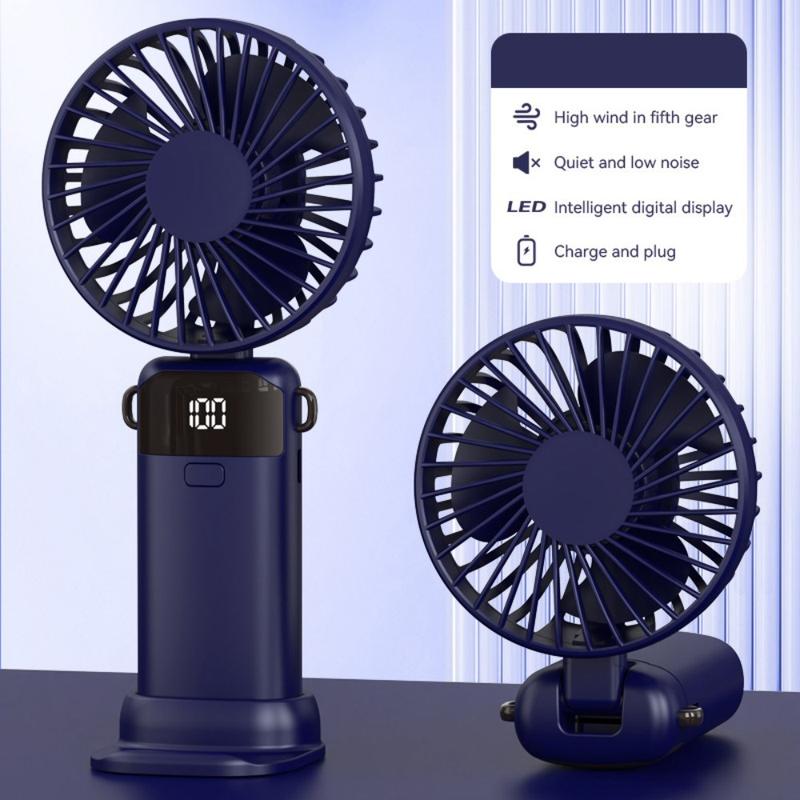 • S1 - Faltbarer Mini-Handventilator mit LED-Anzeige - Wiederaufladbarer Tischventilator mit 5 Geschwindigkeitsstufen und USB-C-Ladeanschluss