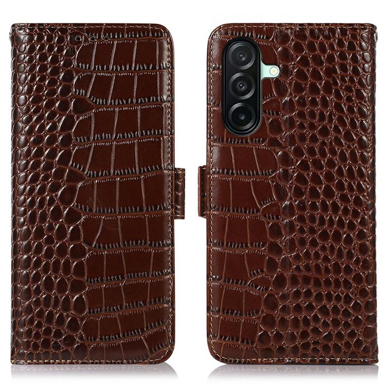 Crocodile Serie Lederhülle mit Geldbörse mit RFID für Samsung Galaxy A27