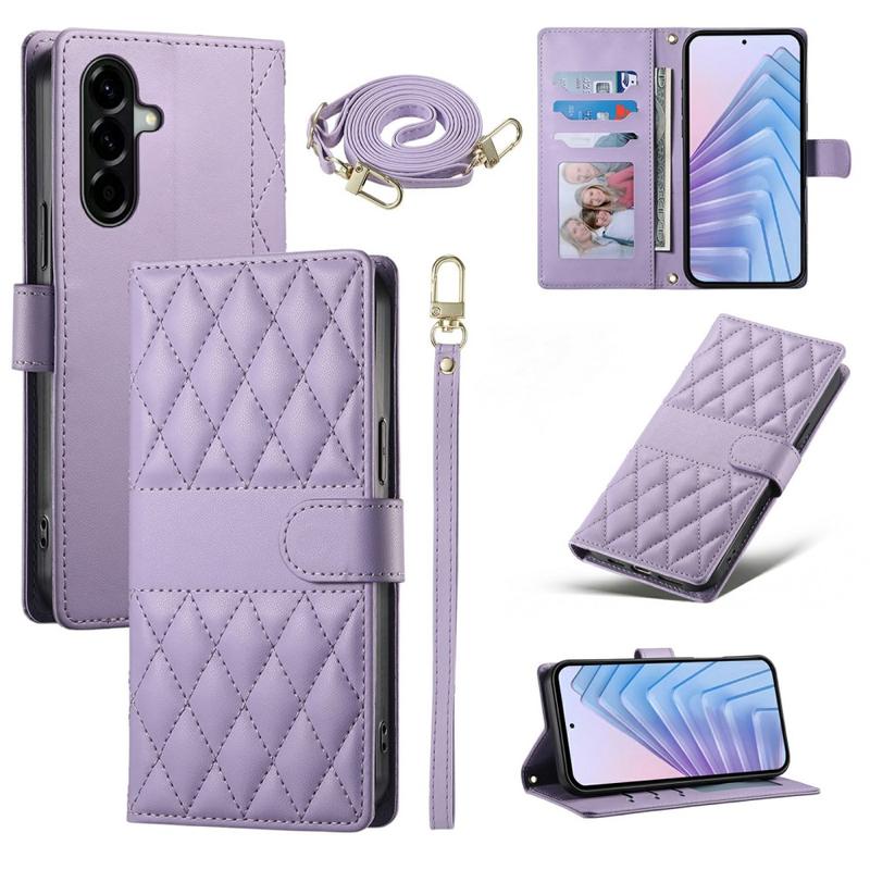 Luxus Gesteppte Wallet Hülle mit Schulter & Handgelenk Strap für Samsung Galaxy A37 - Rhombus-Muster Schutzhülle