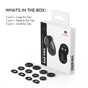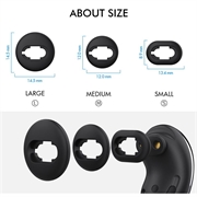 - Drei Größen (S / M / L) passen in Gehörgänge von 10 mm bis 14 mm und sorgen für längere Hörsessions ohne Druckstellen.