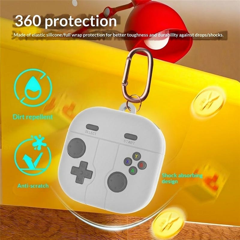 • Retro-Gamepad-Silikonhülle mit Karabinerhaken für Samsung Galaxy Buds 4, Galaxy Buds 4 Pro - Schutzhülle aus flüssigem Silikon für Ohrhörer