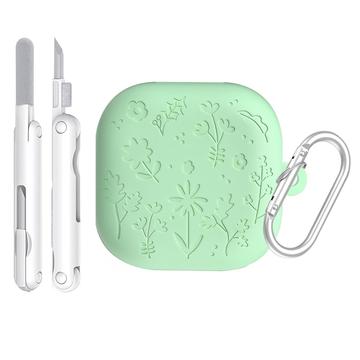 Samsung Galaxy Buds4/Buds4 Pro Silikonhülle mit Blumenmuster und Reinigungsstiften - Matcha-Grün