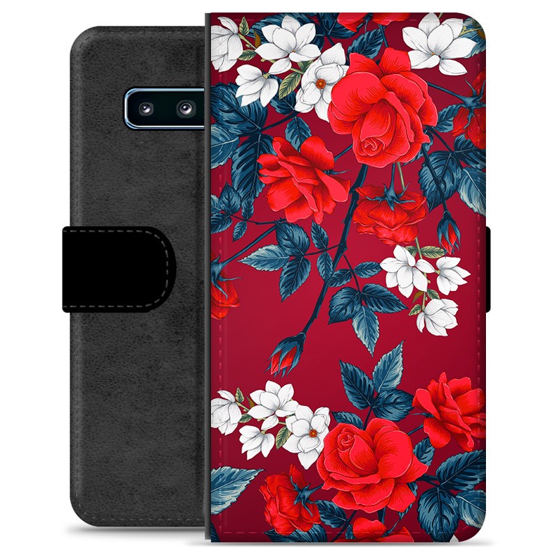 Samsung Galaxy S10 Premium Schutzhülle mit Geldbörse - Vintage Blumen