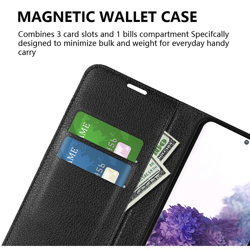 Diese hochwertige Brieftaschenhülle für Samsung Galaxy S20 5G verbessert das Benutzererlebnis dank der integrierten faltbaren Rückseite und mehreren Taschen. Hergestellt aus hochwertigem Polyurethan mit integrierter stoßfester TPU-Hülle.
