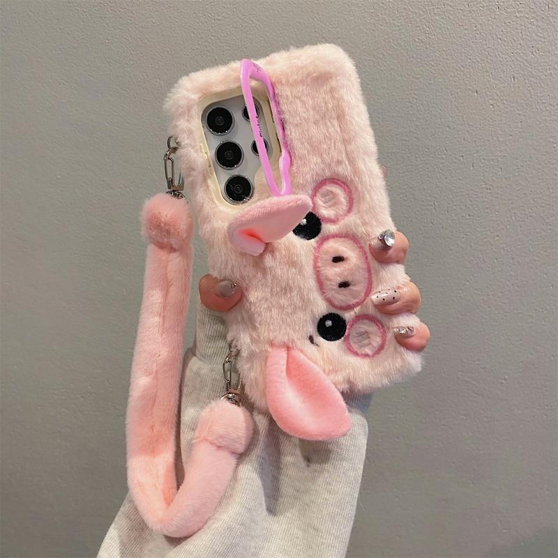 Plüsch-Ferkel-Hülle mit Ständer und Handschlaufe für Samsung Galaxy S24 Ultra
