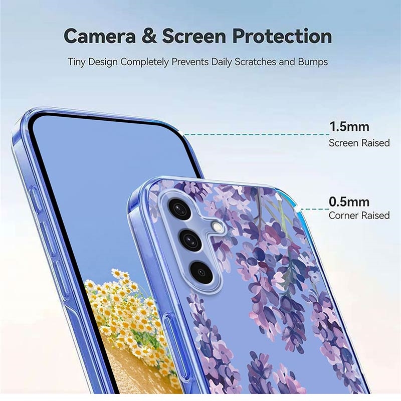 Verwandeln Sie Ihr Samsung Galaxy S25 FE in ein tragbares Kunstwerk. Die Floral-Edition umgibt Ihr Telefon mit einem verträumten Lavendelblütenmuster und zarten Schmetterlingen, gedruckt mit hochauflösenden Farben, die nicht verblassen. Die aus flexiblem, stoßdämpfendem TPU gefertigte Hülle schmiegt sich an jede Rundung Ihres Geräts an, während erhöhte Lippen das Display und die Kameralinsen vor täglichen Stößen schützen. Eine matte, schmutzabweisende Beschichtung sorgt für ein gestochen scharfes Design und verhindert Fingerabdrücke auf dem Telefon, ohne das drahtlose Qi-Laden zu behindern.