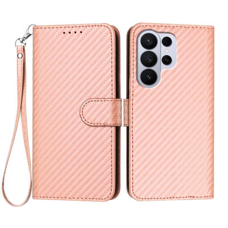 Premium-Hülle mit Trageriemen für Samsung Galaxy S26 Ultra - Kohlefaserstruktur