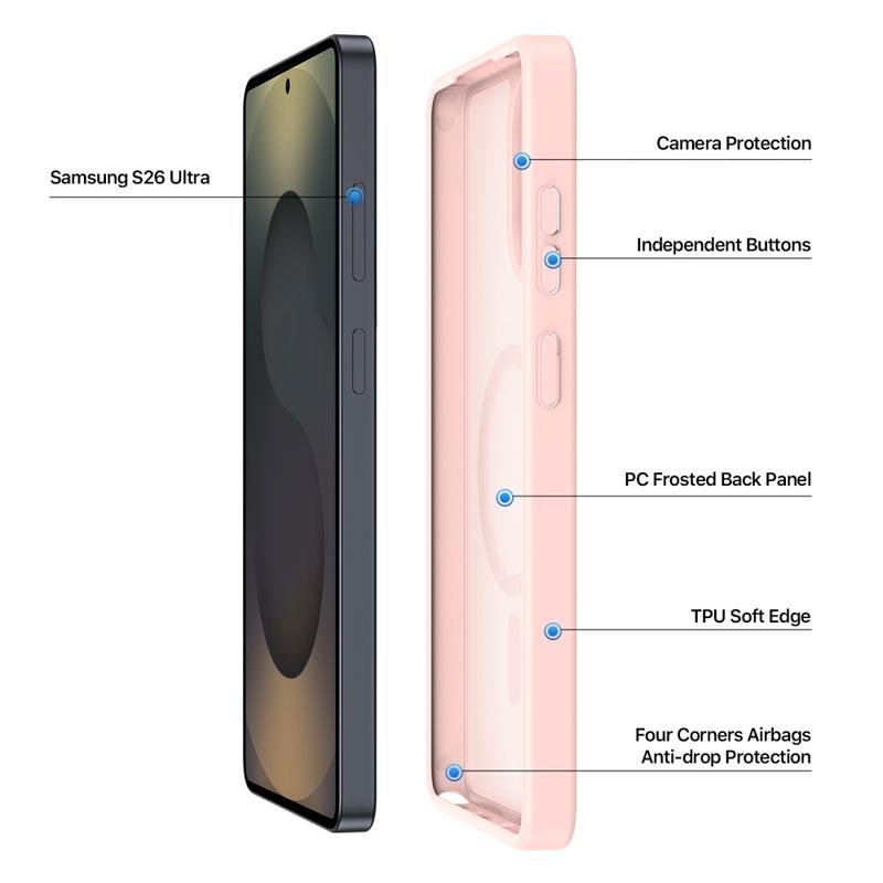 Schützen Sie Ihr Samsung Galaxy S26 Ultra mit einer eleganten, matten Hülle, die sich direkt auf MagSafe-Ladegeräte und -Zubehör aufstecken lässt. Die Yind Serie kombiniert eine kratzfeste PC-Rückseite mit stoßabsorbierenden TPU-Kanten und einem präzise ausgerichteten Magnetring und bietet kabellose Stromversorgung und Rundumschutz bei Stürzen ohne sperrige Taschen.