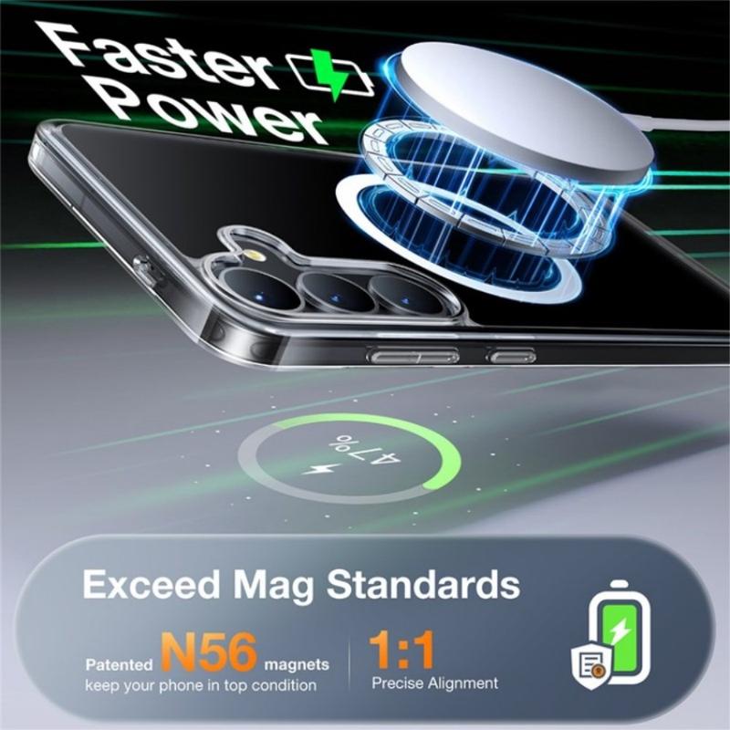 Integrierte hochfeste Magnete sorgen für eine sichere und stabile Verbindung mit magnetischen Ladegeräten, Autohalterungen und anderem kompatiblen Zubehör. Die magnetische Ausrichtung ermöglicht nahtloses kabelloses Laden und eine zuverlässige Befestigung, ohne dass das Gehäuse entfernt werden muss.