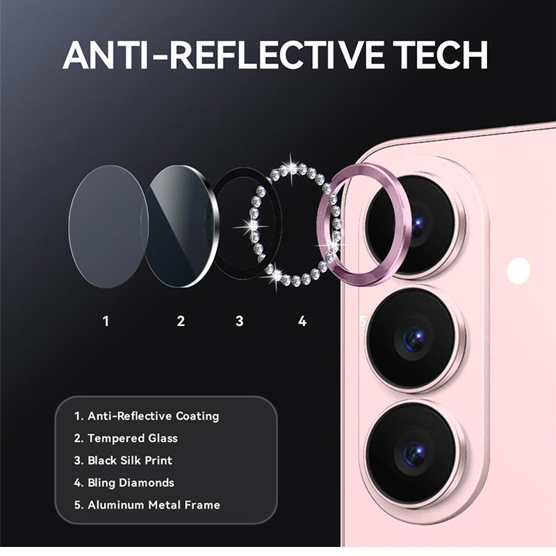 Verleihen Sie Ihrem Samsung Galaxy S26+ mit dem NORTHJO Kameraobjektivschutz Glanz und Schutz. Mit schimmernden Strasssteinen und präzisionsgeschliffenem, gehärtetem Glas schützt er Ihr Kameraobjektiv vor Kratzern, Staub und Stößen und verleiht ihm einen Hauch von Eleganz und Luxus.