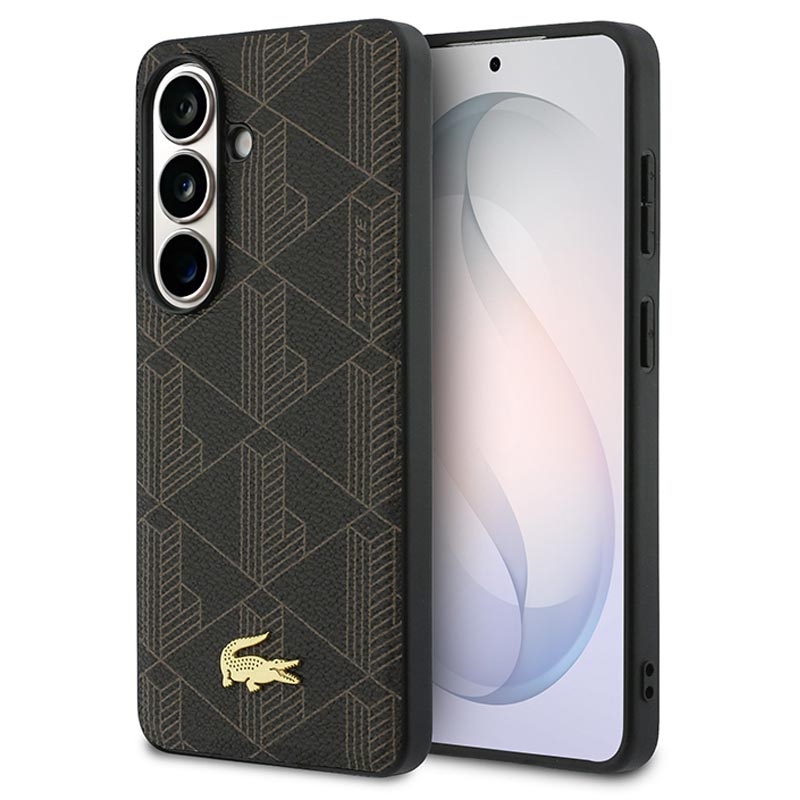 Lacoste PVC Blend Monogram Gold Logo Magnethülle für Samsung Galaxy S26+ - Rückseite mit Krokodil-Logo