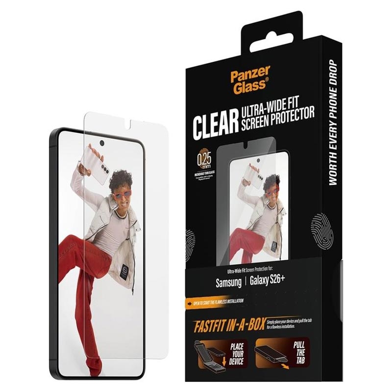 PanzerGlass Ultra-Wide Fit mit FastFit In-A-Box Panzerglas für Samsung Galaxy S26+