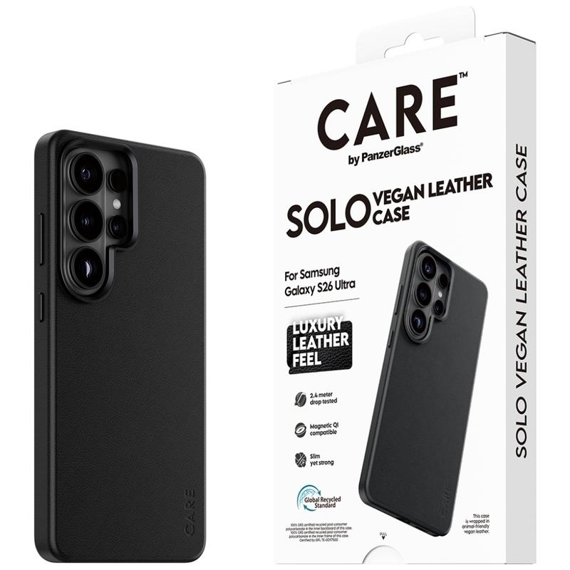 Care by PanzerGlass Solo Magnetische Hülle für Samsung Galaxy S26 Ultra - PU-Oberfläche, Falltest aus 2,4 m Höhe, kompatibel mit magnetischem Zubehör, verbesserter Kameraschutz