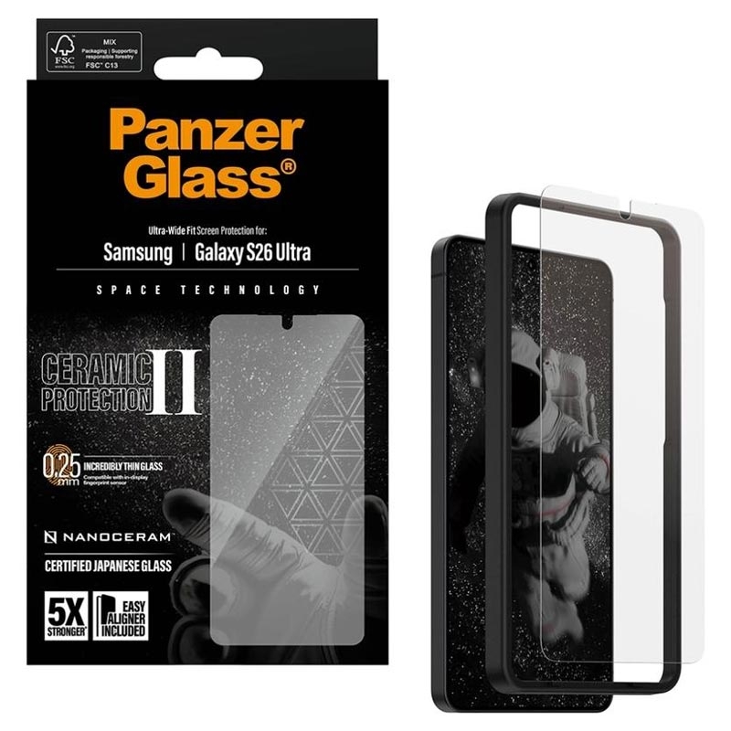 • PanzerGlass Ceramic II Protection Ultra-Wide Fit EasyAligner Panzerglas für Samsung Galaxy S26 Ultra - Glaskeramik, fingerabdruckresistent, casefreundlich