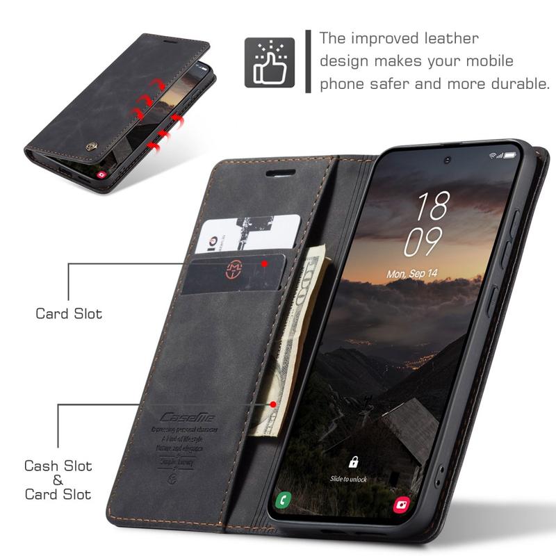 - Eingebaute Magnete halten die Caseme 013 Series Wallet-Hülle geschlossen