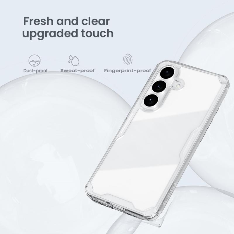 Die Nillkin Nature TPU Pro Hybrid Hülle schützt Ihr Samsung Galaxy S26+ vor Kratzern und alltäglichen Beschädigungen und sorgt mit seinem rutschfesten Design dafür, dass das Gerät während des Gebrauchs sicher in Ihren Händen liegt. Außerdem lässt die Transparenz der Nillkin Nature TPU Pro Hybridhülle Ihr Samsung Galaxy S26+ mit seiner physischen Erscheinung glänzen.
