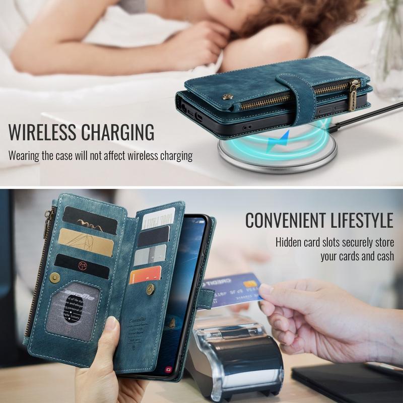 Die Caseme C30 multifunktionale Brieftaschenhülle für das Samsung Galaxy S26 Ultra bietet außergewöhnlichen Rundumschutz und ein exklusives, raffiniertes Design. Diese elegante Hülle besteht aus hochwertigem Polyurethan, verstärkt mit einer stoßfesten TPU-Innenhülle, die sich perfekt an Ihr Samsung Galaxy S26 Ultra anschmiegt. Die Caseme C30 Brieftasche ist mit zahlreichen Kartenfächern, einem großen Geldfach innen und einer Außentasche mit Reißverschluss ausgestattet, die alle durch einen sicheren Magnetverschluss geschützt sind.