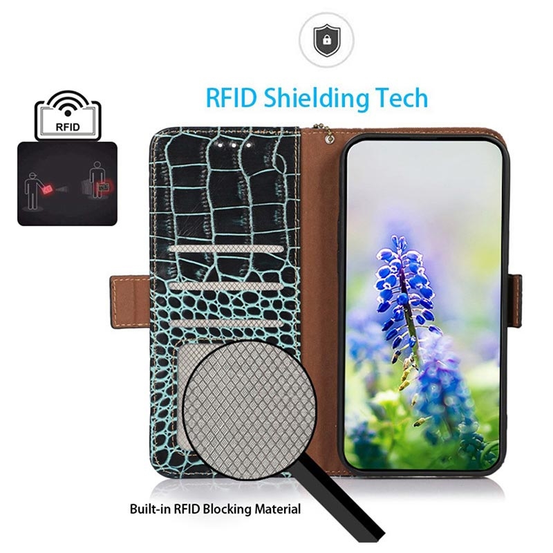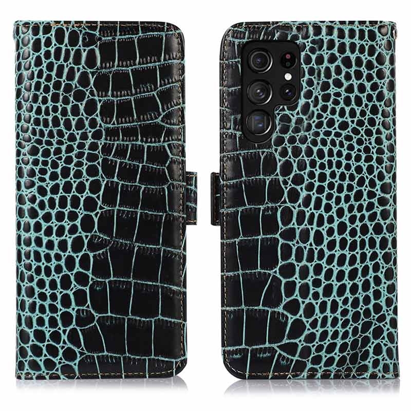 Crocodile Serie Lederhülle mit Geldbörse mit RFID für Samsung Galaxy S26 Ultra