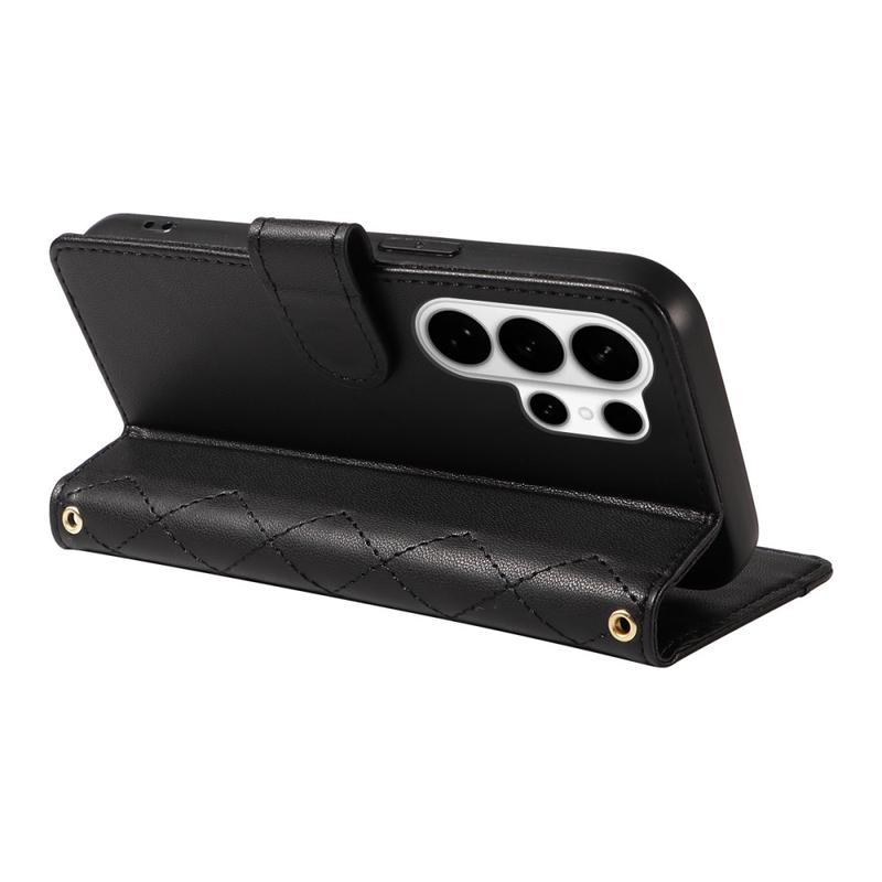 Schützen Sie Ihr Samsung Galaxy S26 Ultra mit dieser luxuriösen, gesteppten Brieftaschenhülle. Hergestellt aus TPU-Material mit PU-Lederbeschichtung, ist diese Hülle kratzfest und anti-fingerprint, sodass Ihr Telefon stilvoll und elegant aussieht. Die Nahtlinie bildet ein Rautenmuster und verleiht der Hülle eine modische und schöne Note. Der erhöhte Rand von Kamera und Bildschirm bietet effektiven Schutz vor Kratzern, während die präzisen Aussparungen vollen Zugriff auf alle Tasten, Anschlüsse und andere Funktionen ermöglichen. Das Brieftaschendesign ermöglicht die einfache Aufbewahrung wichtiger Karten und Bargeld. Neben zusätzlichem Schutz vor Kratzern, Stößen, Stürzen und alltäglichen Beschädigungen wird diese Hülle außerdem mit einem Schultergurt und einer Handschlaufe für zusätzlichen Komfort geliefert.