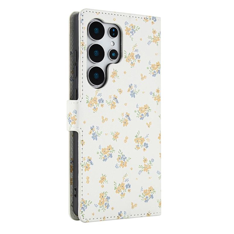 Rhombisches Blumen Wallet Hülle für Samsung Galaxy S26 Ultra - mit Riemen und Kartenfächern