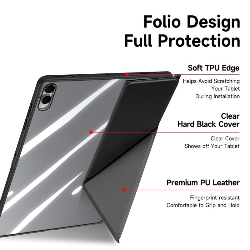 Ultra-schlank: Die schlanke, leichte und weiche Vorderseite besteht aus hochwertigem PU-Leder, die kratzfeste Innenseite bietet hervorragenden Schutz, und der TPU-Rahmen mit PC-Rückseite macht Ihr Tablet stabiler
