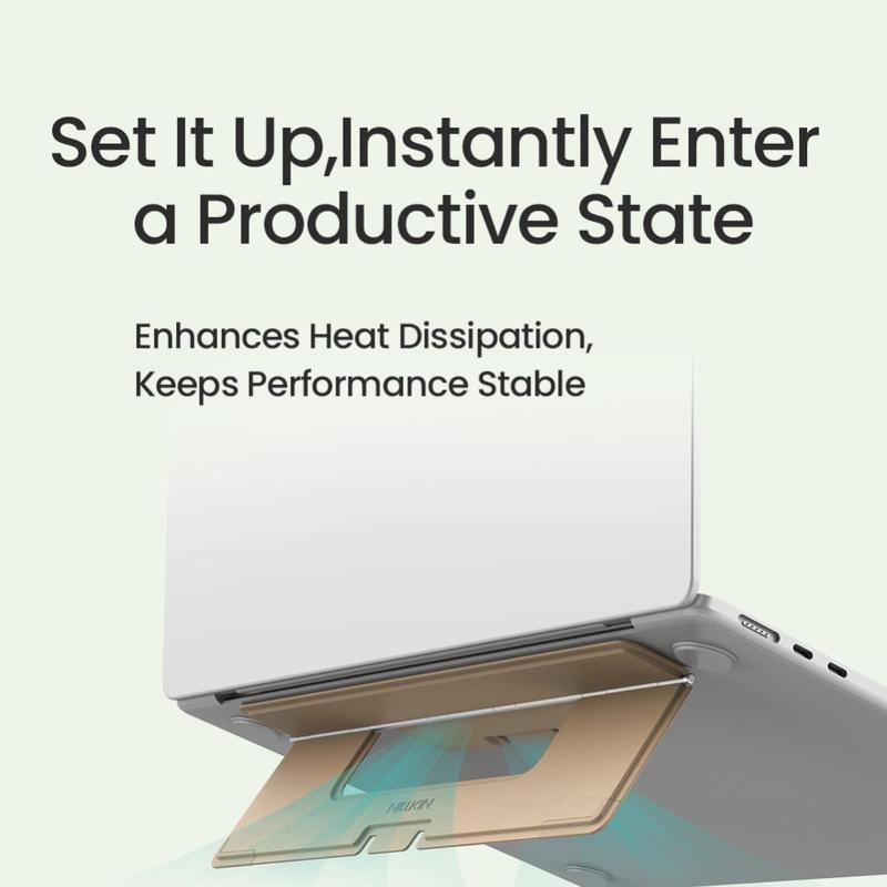 Verbessern Sie Ihren Arbeitsbereich, verbessern Sie Ihre Körperhaltung und schützen Sie Ihren Laptop mit dem NILLKIN Dual-Wing Adhesive Laptop Stand - Ihrem zuverlässigen Partner für mühelose Produktivität unterwegs.