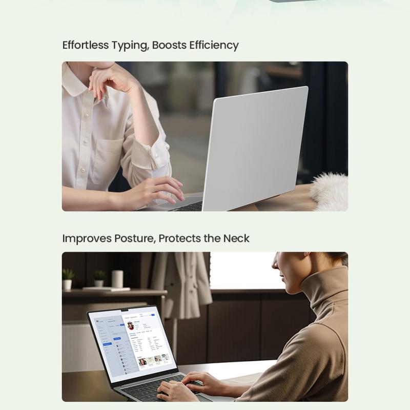 - Verbesserte Kühlung: Die zweiflügelige Struktur hebt Ihren Laptop an, um einen effizienten Luftstrom zu fördern und Überhitzung zu vermeiden.