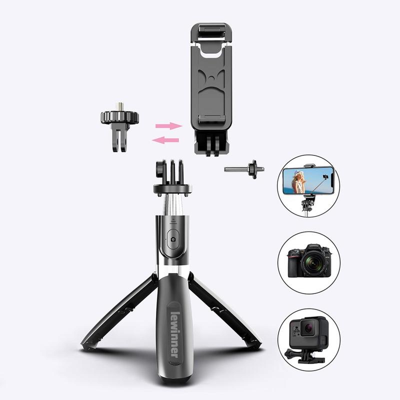 • Selfieshow L02 Bluetooth Selfie Stick Stativ - 1 m ausziehbar, Fernsteuerung, 360° drehbar