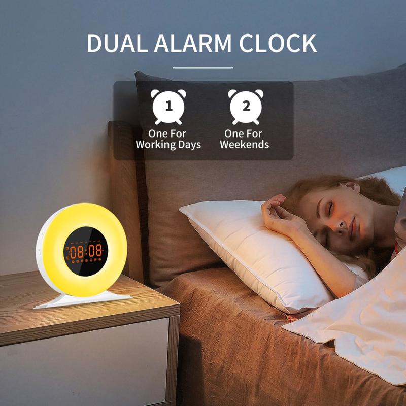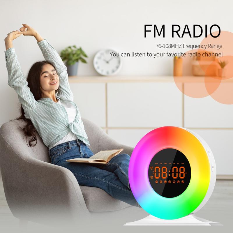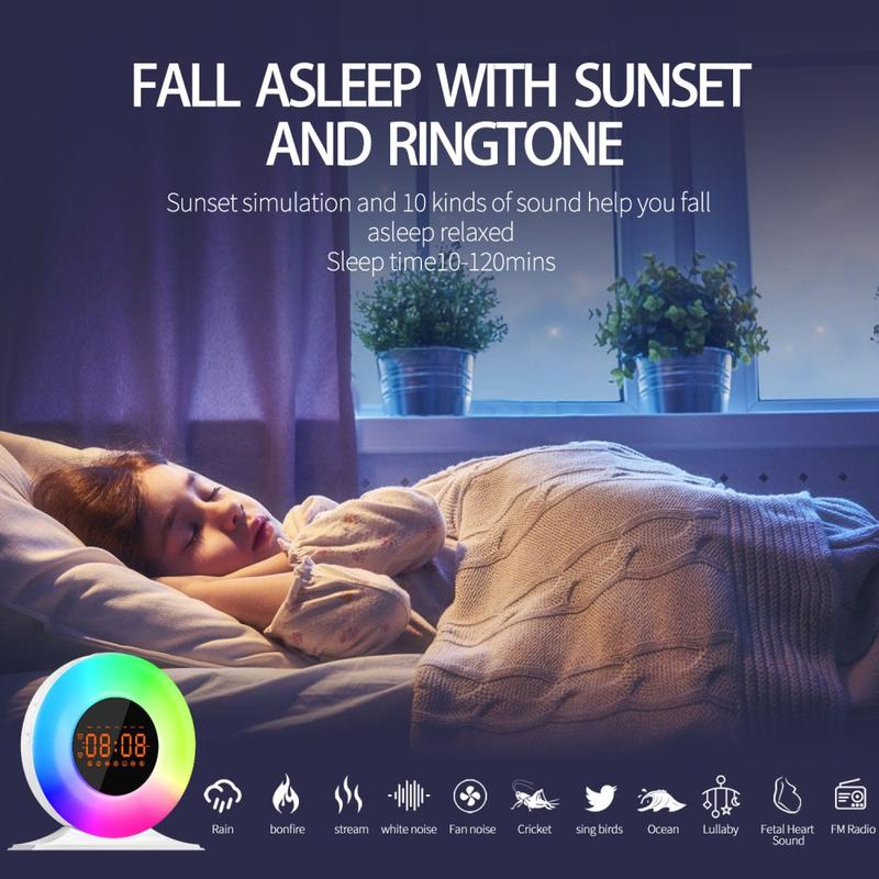 • SH05 Sonnenaufgang-Wecker mit weißem Rauschen und Nachtlicht - FM-Radio, Sleep-Timer