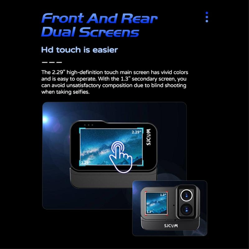 • SJCAM SJ20 Dual-Objektiv-Actionkamera - 4K30, Dual-Bildschirm, Nachtsichtobjektiv, 6-Achsen-Stabilisierung, 5 m wasserdicht (30 m mit Gehäuse), Wi-Fi 2,4/5 GHz, USB-C