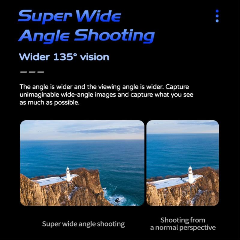 - Weitwinkel: 135-Grad-Objektivwinkel für beeindruckende Aufnahmen