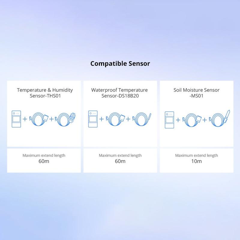 - Funktioniert mit Sonoff RJ11-Sensoren wie THS01 und DS18B20 mit RJ11-Buchse