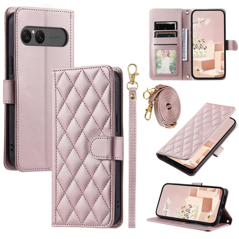 Luxus Gesteppte Wallet Hülle mit Schulter & Handgelenk Strap für Sony Xperia 10 VII - Rhombus-Muster Schutzhülle