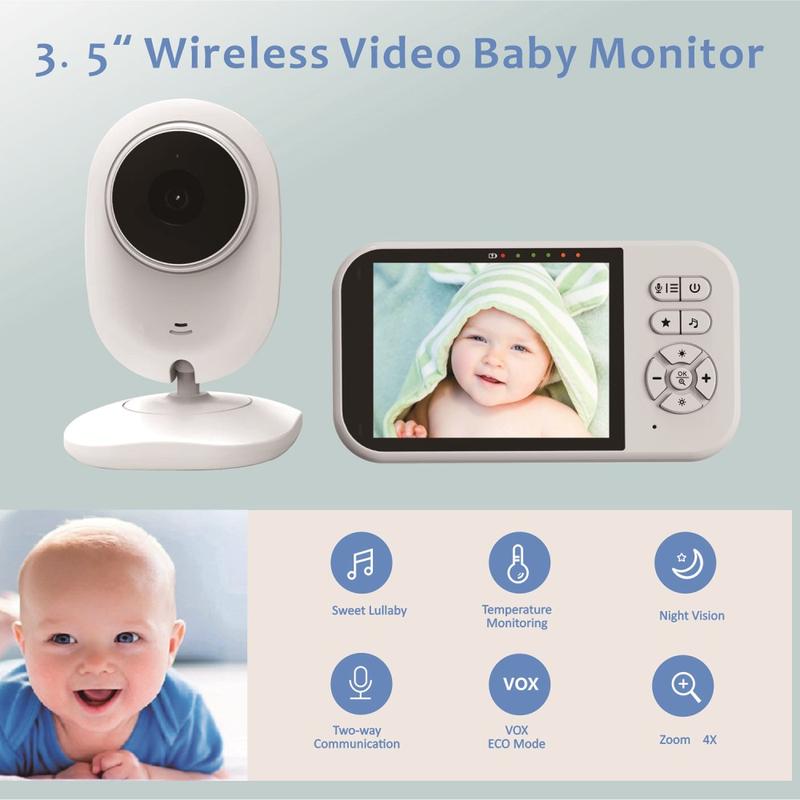- 3.5-Zoll-LCD-Bildschirm - Klares Farbdisplay zur einfachen Überwachung des Babys bei Tag und Nacht.