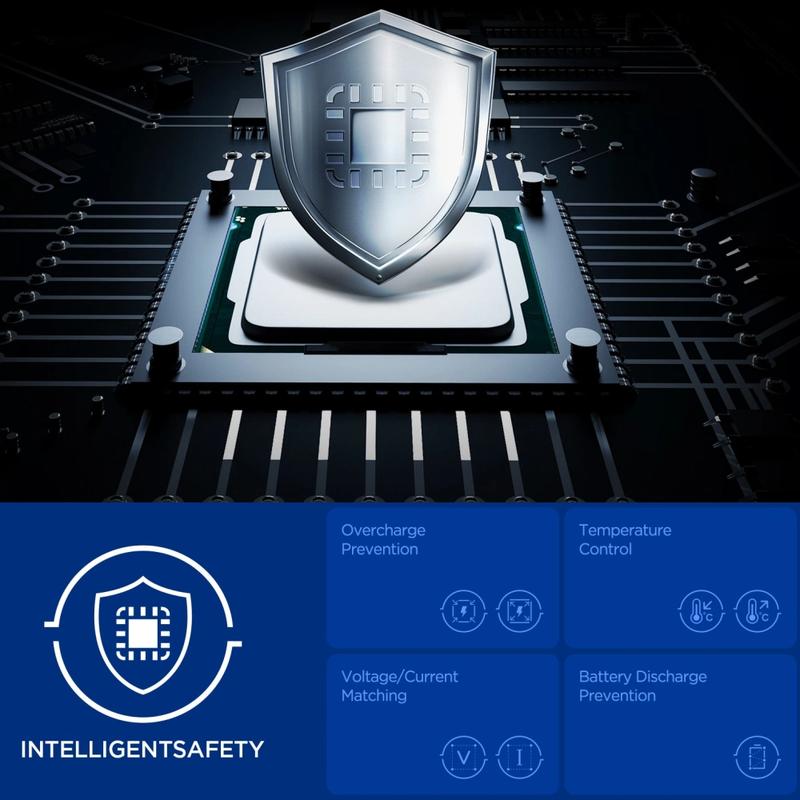 Das intelligente Quantum-Boost-System erkennt automatisch Ihre angeschlossenen Geräte und passt die Ladeparameter für optimale Geschwindigkeit, Effizienz und Sicherheit an, um eine langfristige Akkugesundheit zu gewährleisten.