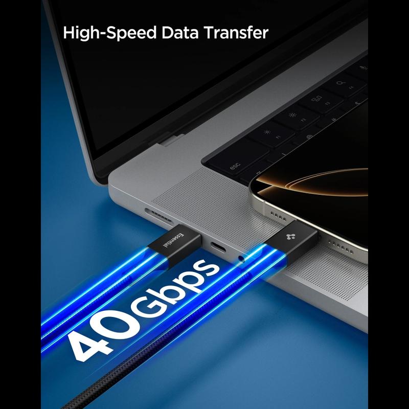 • Spigen EB24015CC Essential USB-C-zu-USB-C-Kabel 240W PD (USB4 40 Gbit/s) mit Thunderbolt 4 und DisplayPort 2.0
