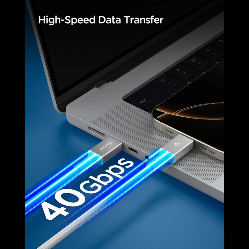 • Spigen EB24015CC Essential USB-C-zu-USB-C-Kabel 240W PD (USB4 40 Gbit/s) mit Thunderbolt 4 und DisplayPort 2.0