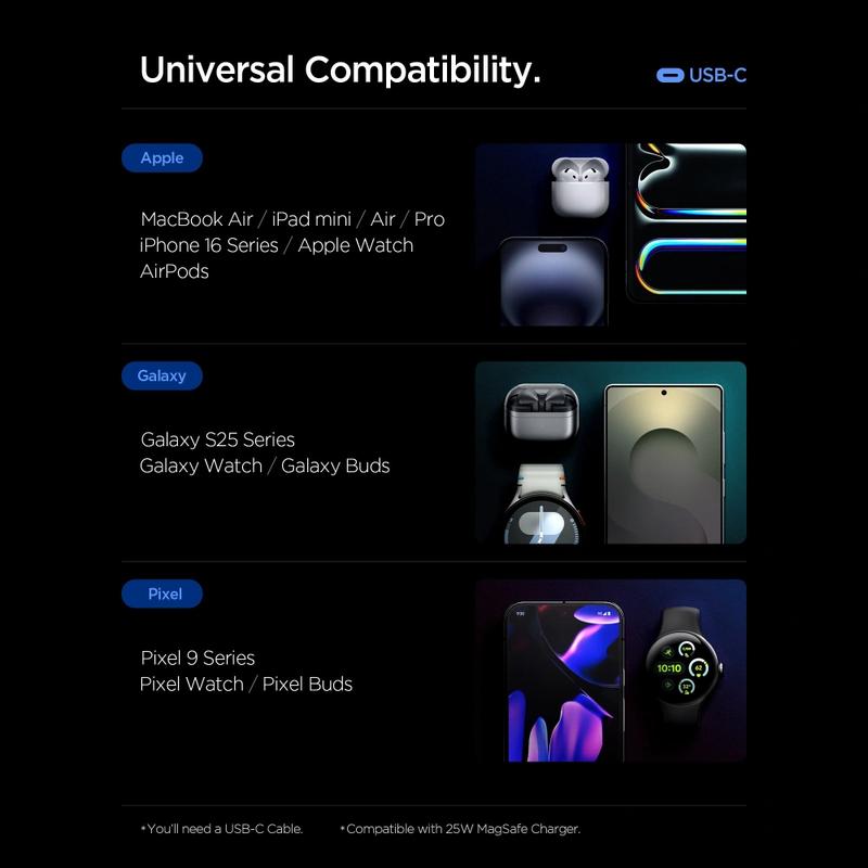 Das Spigen EE673EU ist die perfekte All-in-One-Ladelösung für Benutzer mit mehreren Geräten. Mit einer starken Stromversorgung, einem intelligenten Energiemanagement und robusten Sicherheitsmerkmalen sorgt es für zuverlässiges, schnelles Laden, wo immer Sie sind. Kompakt, effizient und in der bewährten Spigen-Qualität gefertigt, ist es eine ausgezeichnete Wahl für Reisen, Arbeit und den täglichen Gebrauch.