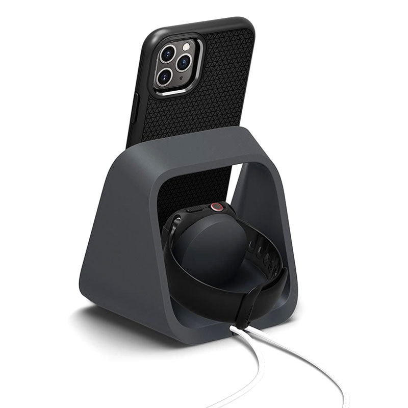 Ein funktioneller Ständer Spigen S316 ist zum Aufladen von Apple Watch und iPhone vorgesehen. Dieser Ständer ist praktisch zum Andocken zu Hause und auf Reisen. Das Modell S316 ist aus TPU-Material hergestellt, wodurch es stabil und praktisch ist und Ihr Gerät in einem bequemen Betrachtungswinkel hält.