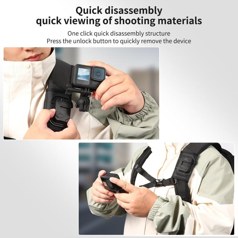 - Rucksack-Schultergurt-Halterung für den freihändigen Einsatz von Actionkameras