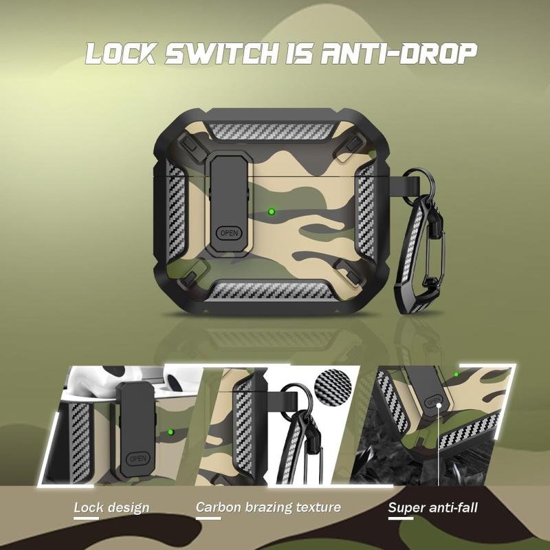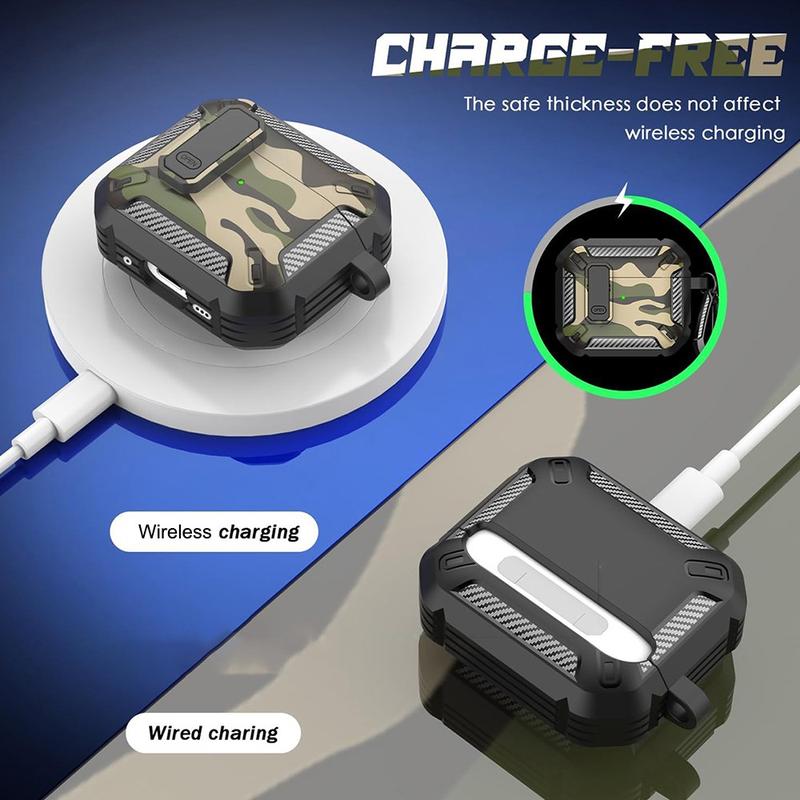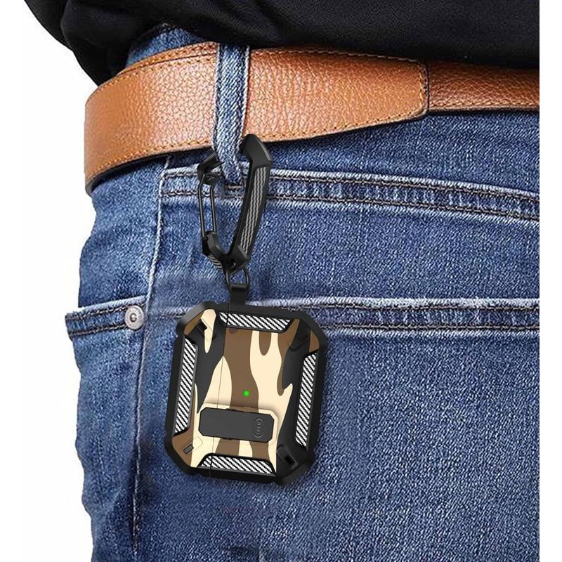 • Tarnfarbenes, stoßfestes TPU-Etui mit Karabinerhaken für AirPods 4 - mit Unterstützung für kabelloses Laden