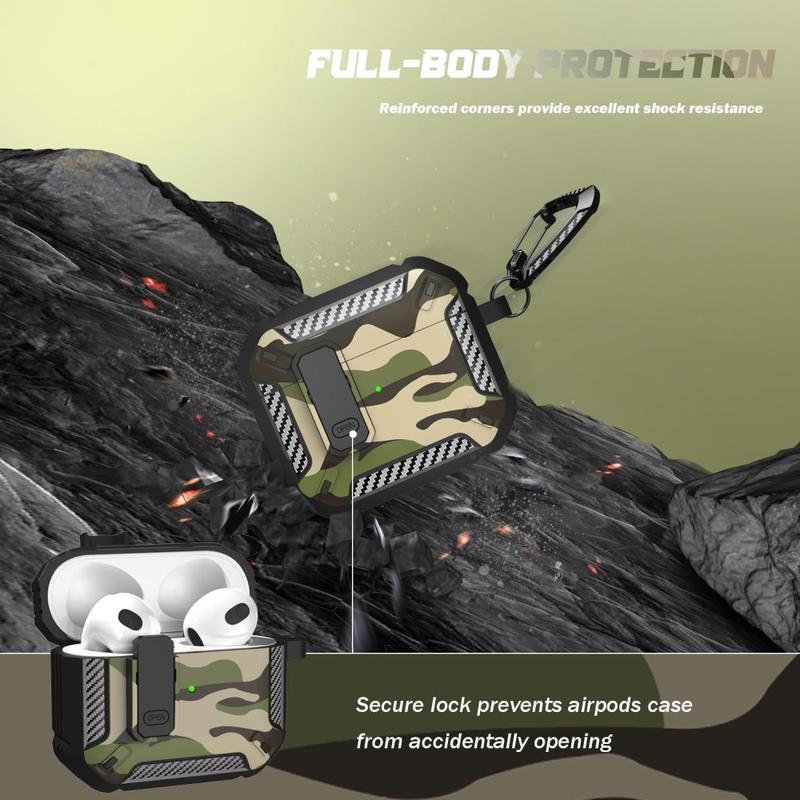 Stoßfestes Camouflage-Etui für AirPods 4 mit Karabinerhaken - Tarnfarben Grün