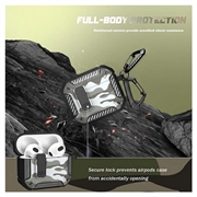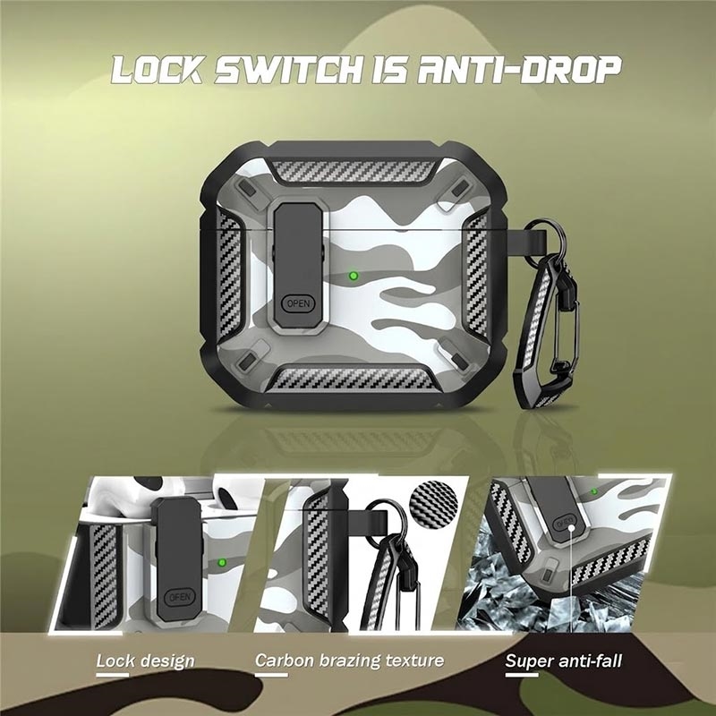 Tarnfarbenes, stoßfestes TPU-Etui mit Karabinerhaken für AirPods 4 - mit Unterstützung für kabelloses Laden