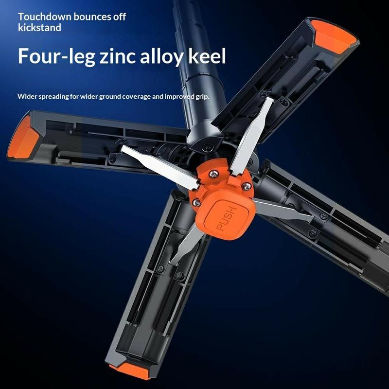 Die automatisch ausklappbaren Stativbeine sorgen beim Aufstellen für schnelle Stabilität, während das ausziehbare Design und die drehbare Handyhalterung den Wechsel zwischen verschiedenen Aufnahmewinkeln und Formaten erleichtern. Die mitgelieferte Bluetooth-Fernbedienung ermöglicht freihändiges Fotografieren, und die beiden quadratischen Aufhellleuchten sorgen für zusätzliche Helligkeit bei Selfies, Videoanrufen und Aufnahmen.
