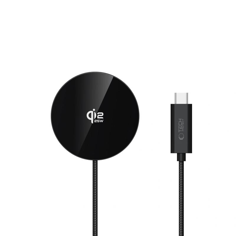 • Tech-Protect A50 Magnetisches MagSafe-Ladegerät - 25-W-Schnellladepad nach Qi2.2 mit USB-C-Kabel