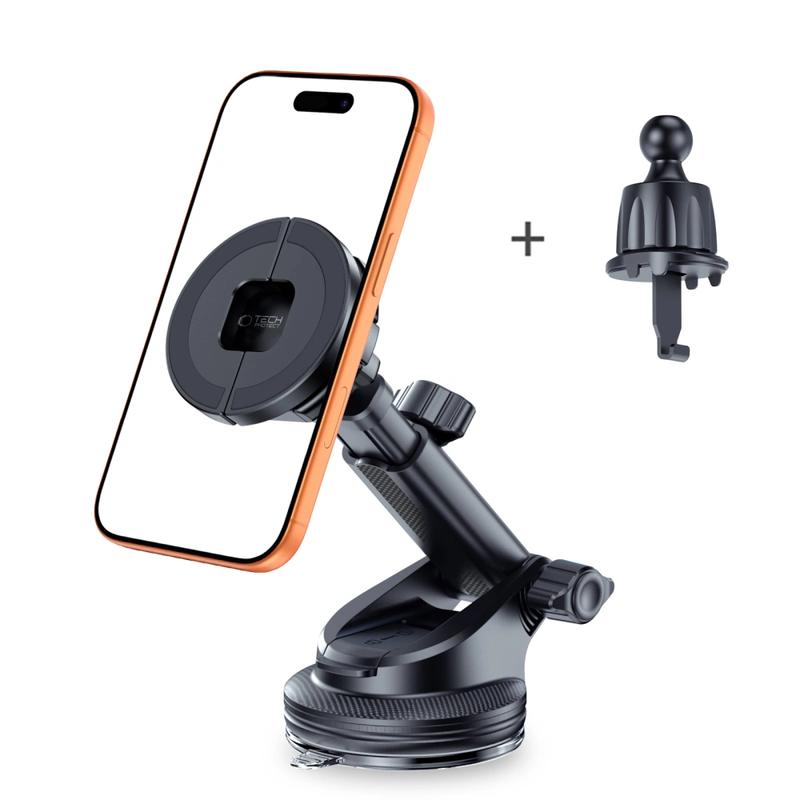 • Tech-Protect N62 2-in-1 MagSafe- und Klemmhalterung für das Auto - Befestigung am Armaturenbrett, an der Windschutzscheibe und an der Lüftungsöffnung mit 360-Grad-Drehung